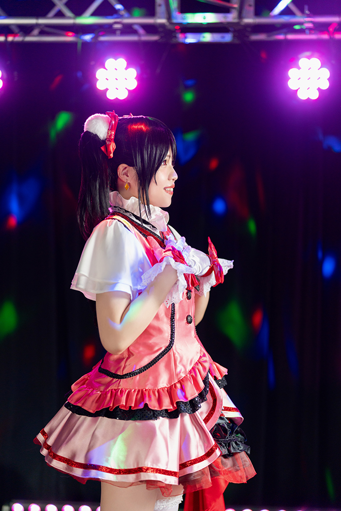照明を落として、センター―ピースを使うと赤、緑、青の3色の光源が背景のカーテンやステージの床に投影され、また違った雰囲気の写真になります。